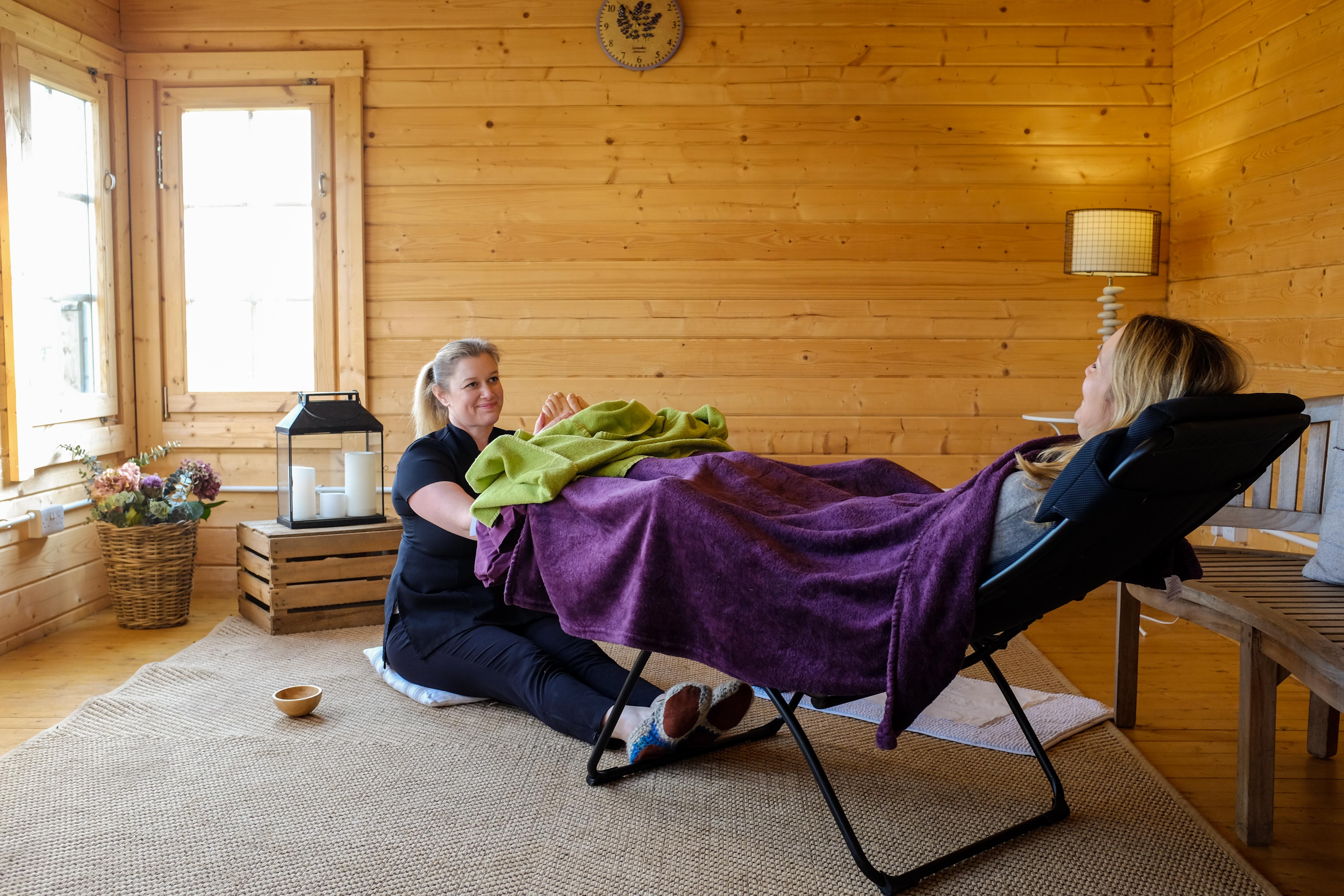 It’s amazing! Everybody has commented on what a beautiful space it is and how it enhances the whole experience for them. As soon as they get out of their car and see the purple (or grey in the current season!), it instantly helps them to relax. They come into the cabin which is so cosy, and such a great space in its own right. People really do feel the benefits of the countryside and the fresh air just from being here. There’s a great synergy between the treatment and the location.