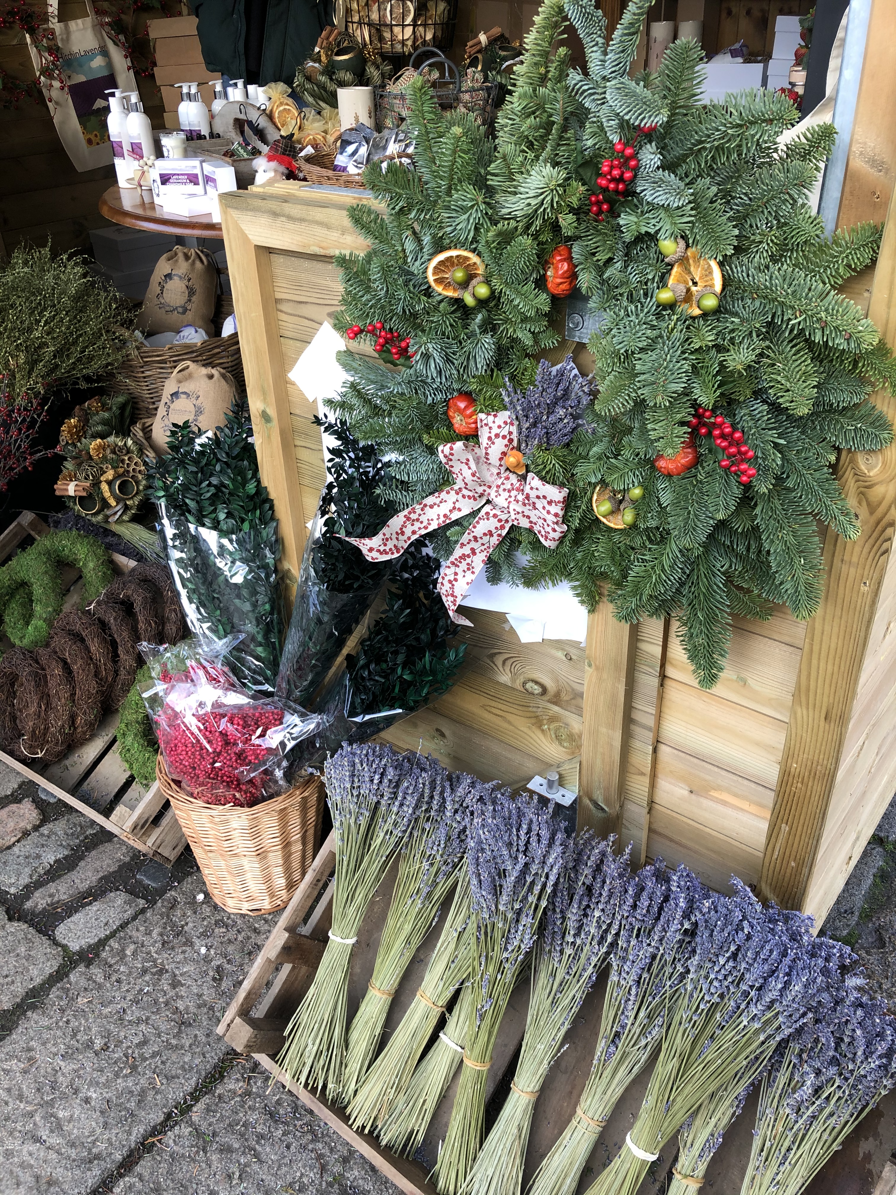 We’ve brought a wide range of our products out with us – we have our own brand toiletries, gift boxes, candles and essential oils. We also have locally crated artisan gifts, dried flowers and Christmas decorations. Recent additions to our portfolio are some Christmas wreath kits containing everything you’ll need to make your own delightful decoration and a gin gift set containing everything you’ll need to make your own delicious drink! Whether you’ve been naughty or nice, we’d love to see you at our stall so please come and say hello!