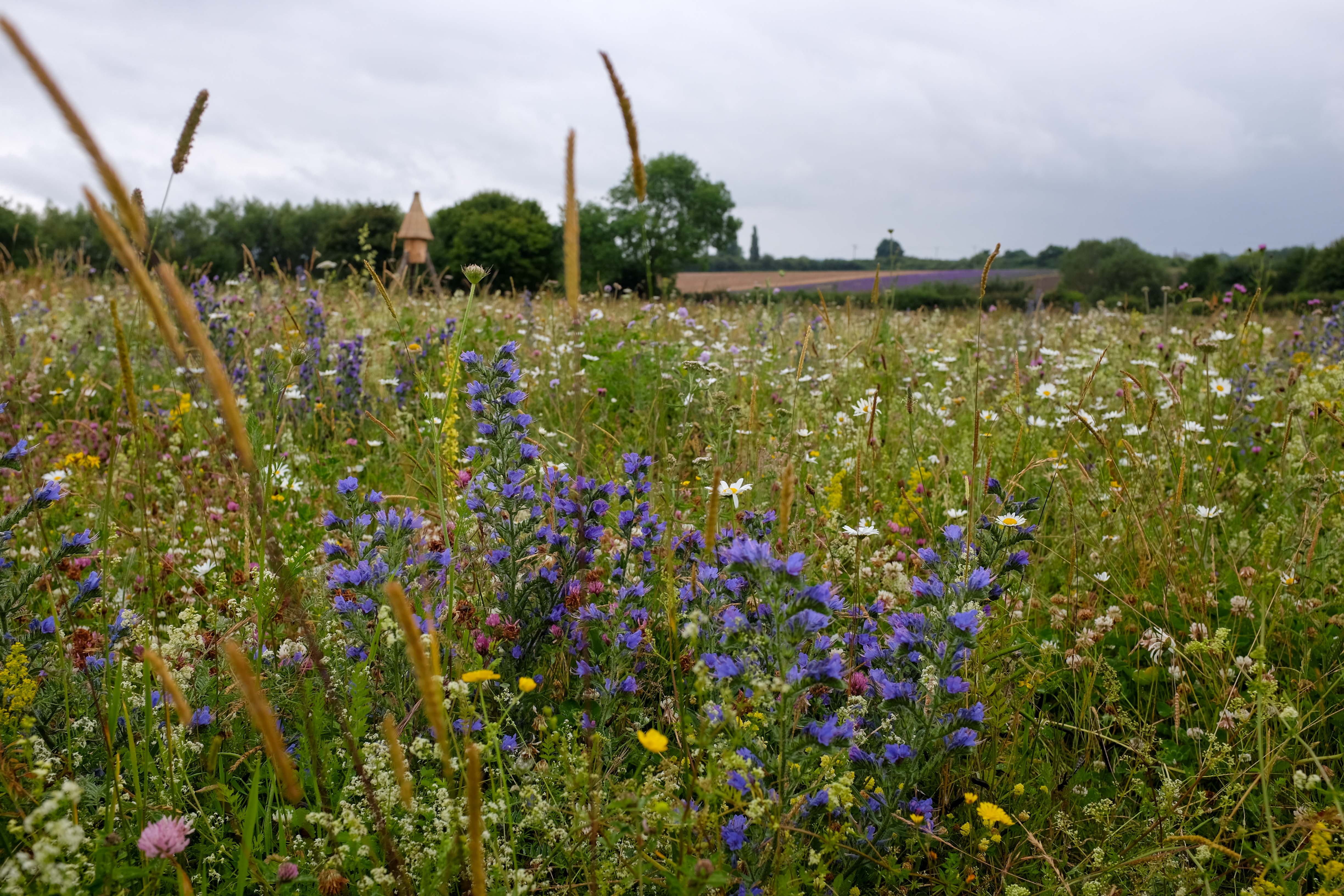 The lavender and wildflowers are shining through, despite the clouds. We’re being blessed with a bumper crop of flowers this year, with our angustifolia varieties looking particularly vibrant!