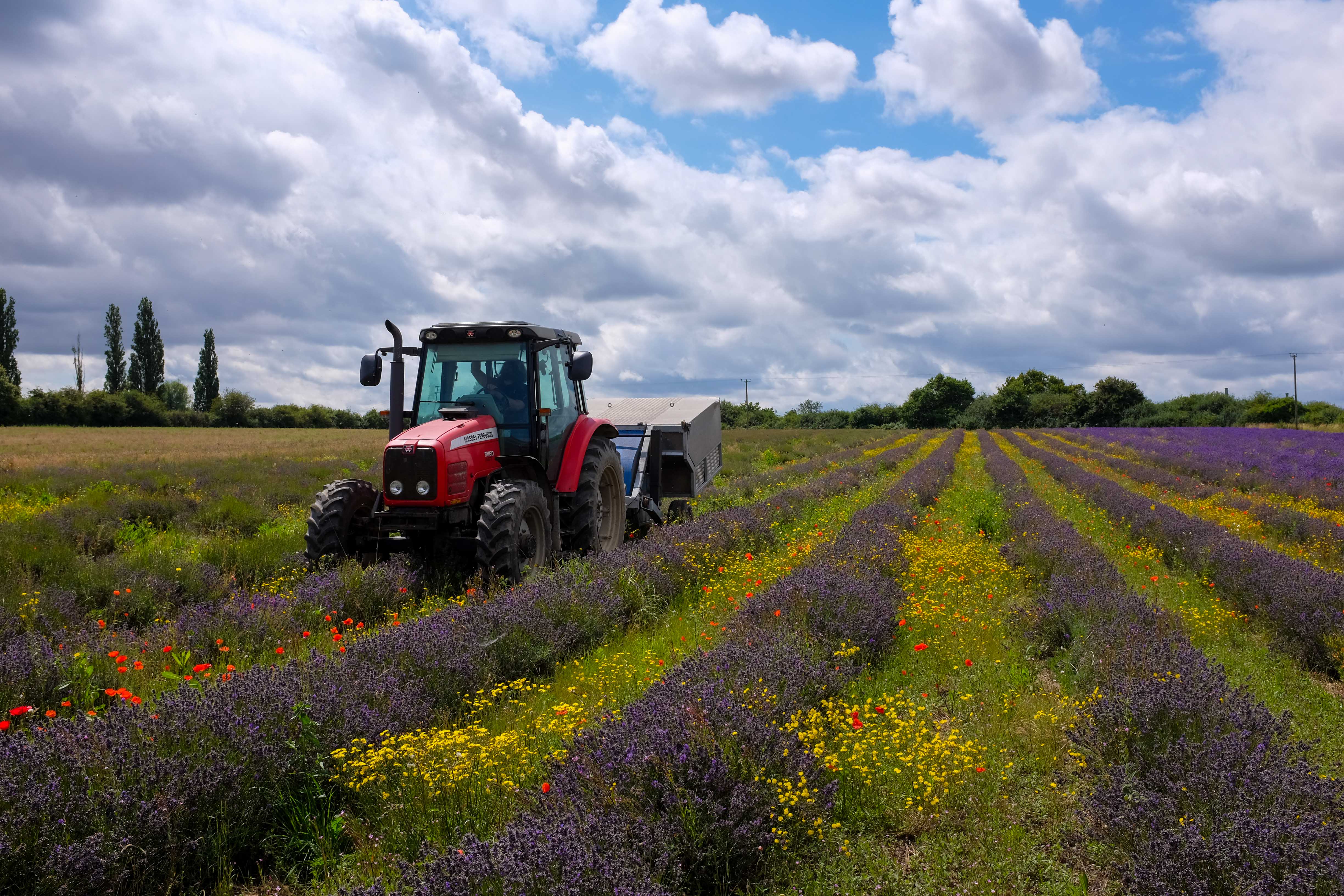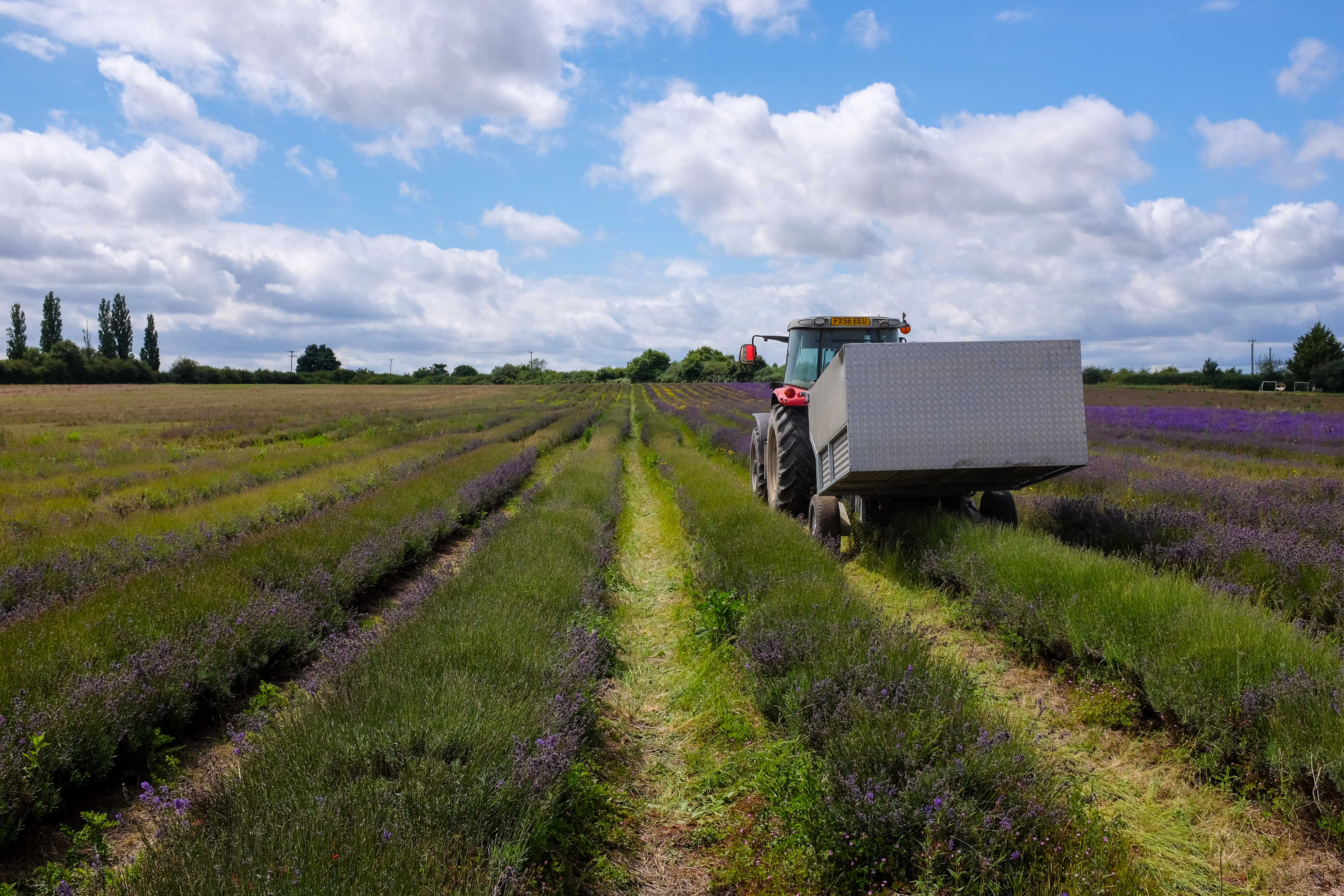 You don’t need anything so grand as a mechanised harvester at home! Just trim back your lavender bushes to around 1–2 inches above the woody part of the plant using scissors or a hand scythe if you have one.