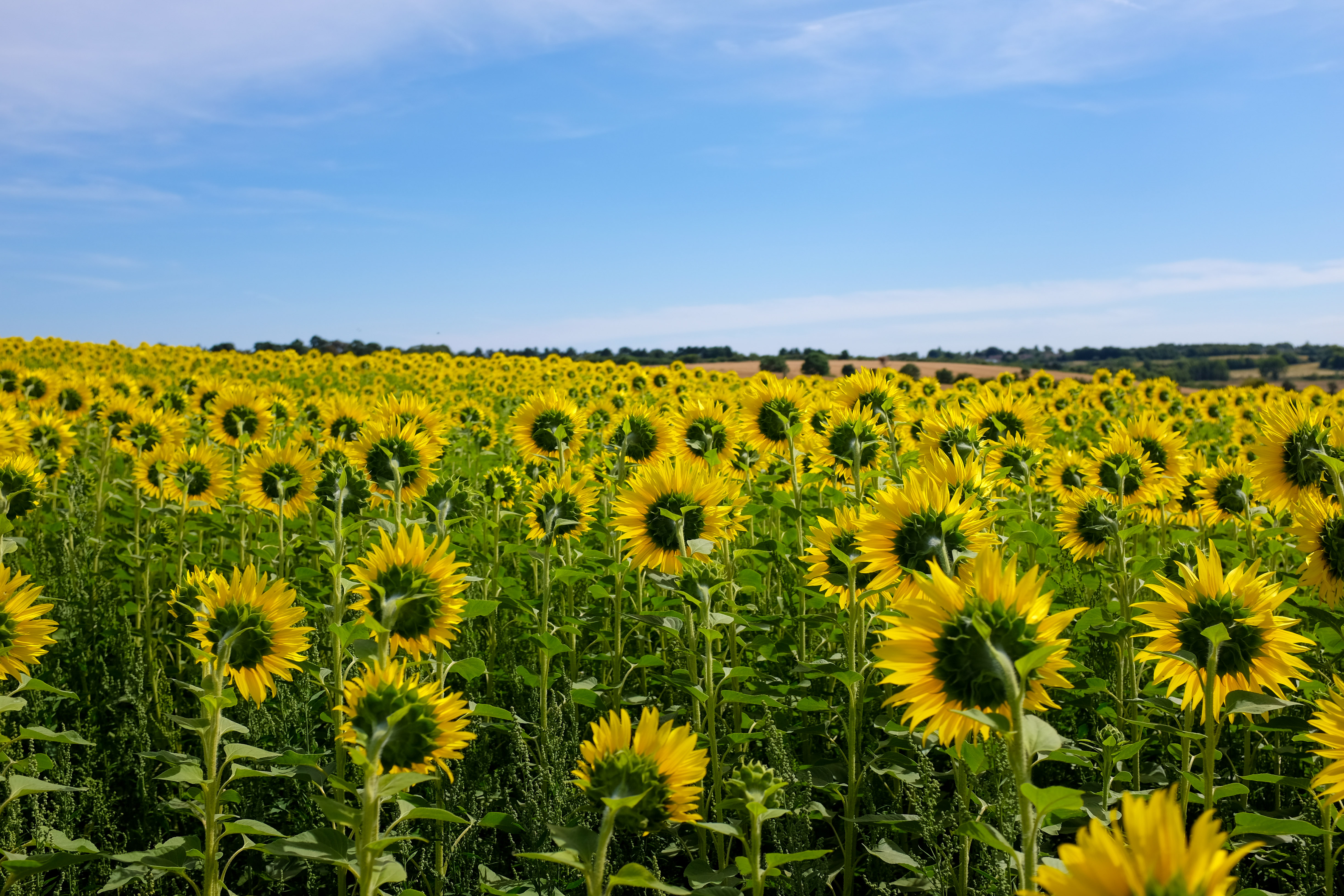 The headline news this week is that the sunflowers are in full bloom, whilst the lavender flowering season is coming to its end. It’s looking like we’ll have lovely weather for the remainder of this week, so it’s still a good time to come if you want to see our bright yellow sunflower patches!